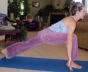 Exhale lunge align knee over ankle and bring the left the to the top of the mat inhale as you raise up through the spine reaching for the sun. Exhale hands to heart. Repeat this exercise for the completion of a sun salute.